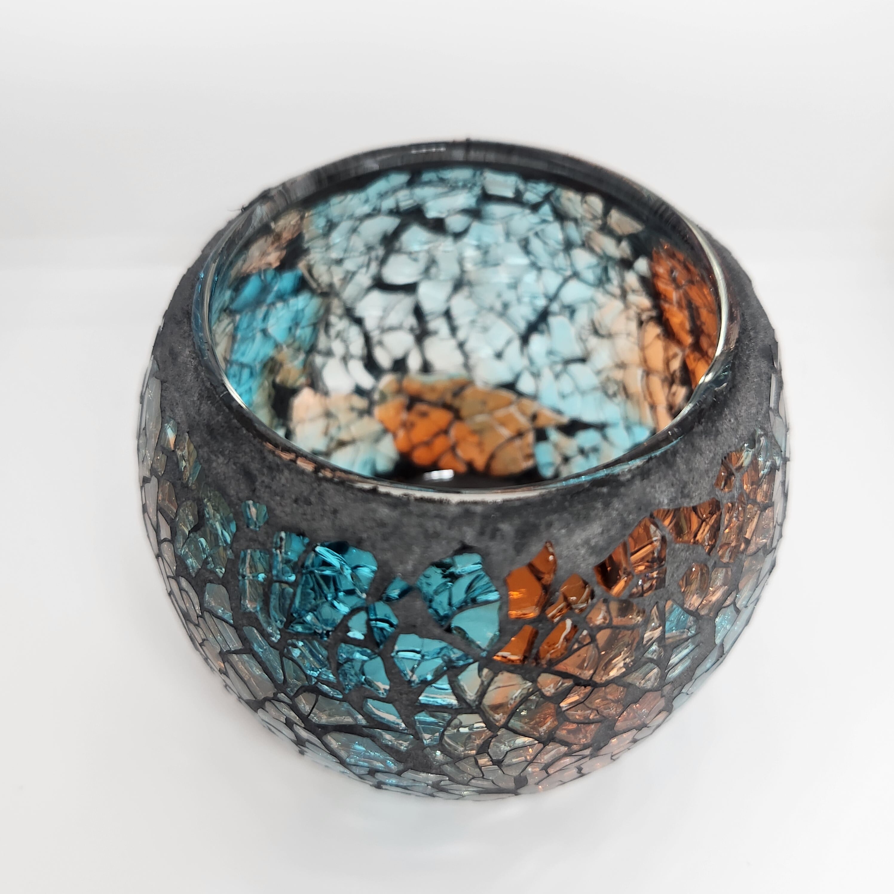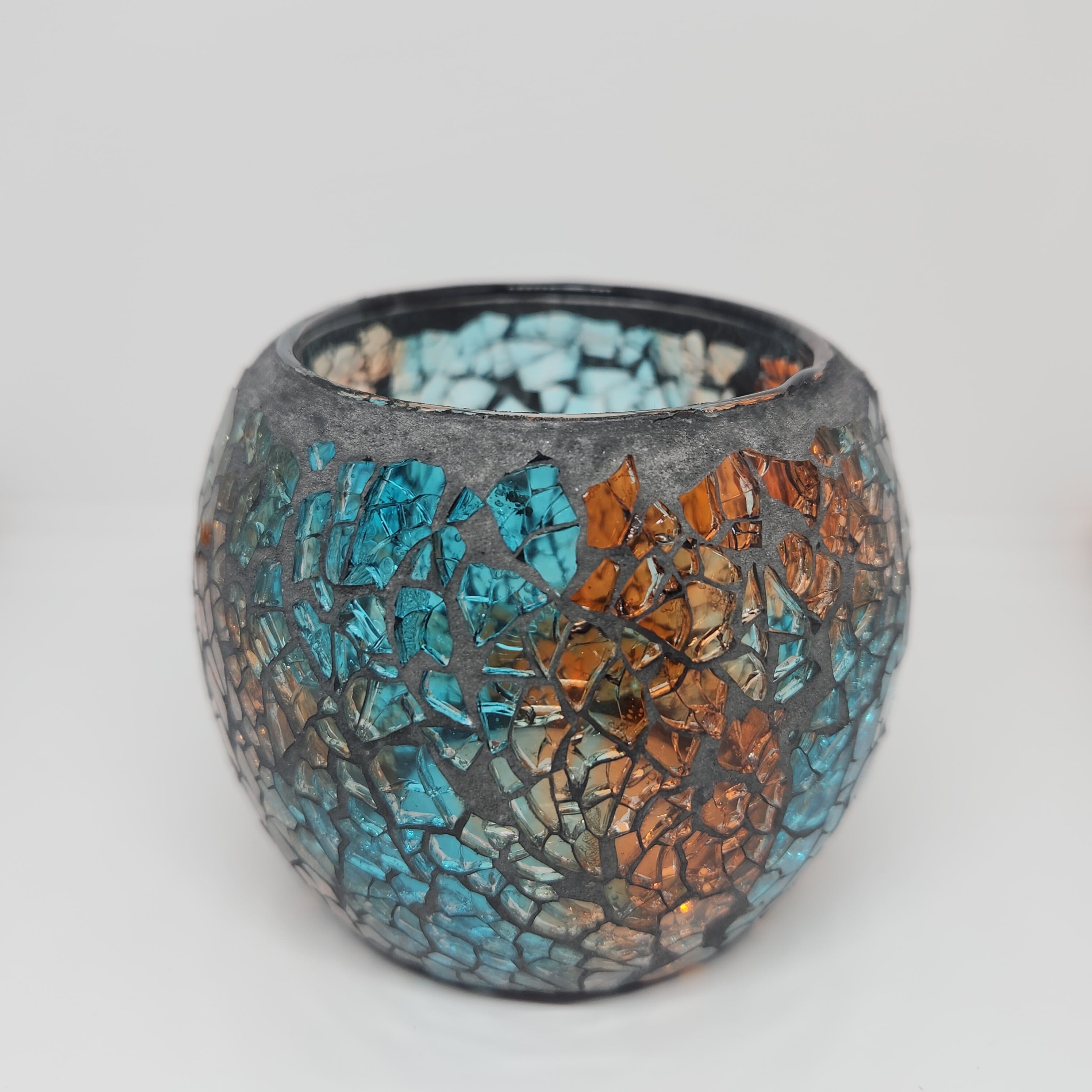 特注モザイクガラスキャンドルホルダー【ブルー&オレンジ】